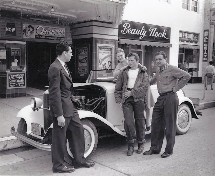 DEL MAR THEATRE February 25, 1957. That’s Brad McDonald (Mr. Capitola) on the far right. That’s a wax dummy of James Dean (he died Sept. 30,1955) leaning against the car. I have no idea who the guy on the left or the woman behind the dummy is. I can’t quite read the ticket prices but loges cost a bit more. “Oklahoma” starred Gordon McRae, Gloria Grahame, and Shirley Jones and it’s in Cinemascope!!!